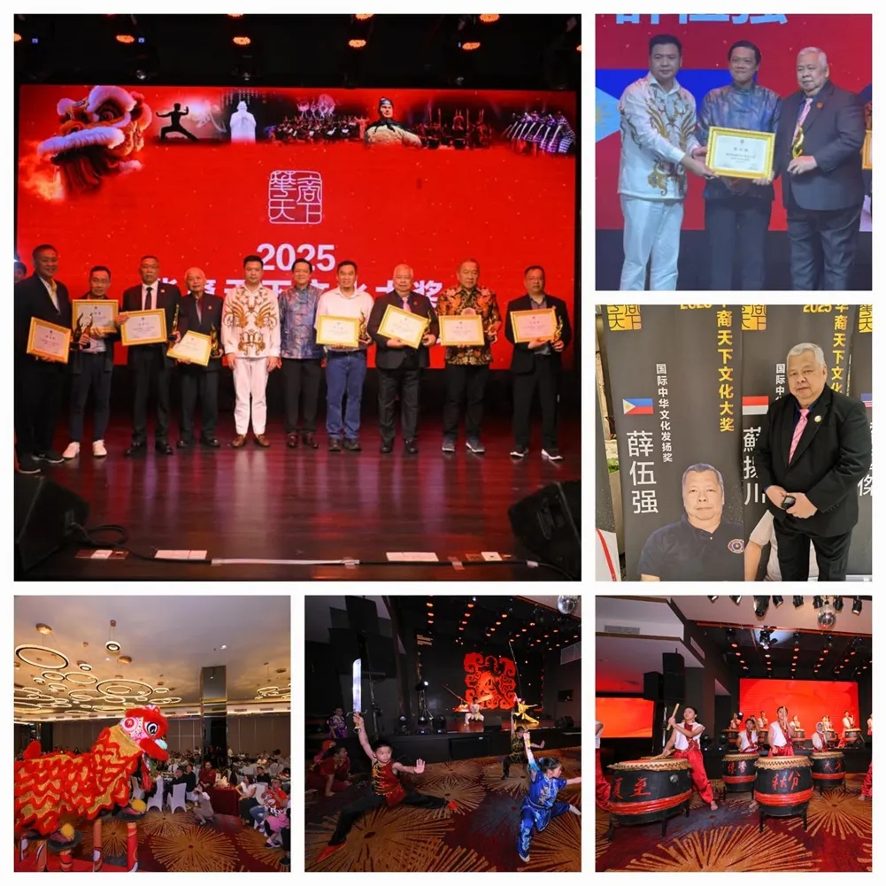 菲律濱嶺南國術總會總教練薛伍強師傅,於二月廿二日赴馬來西亞參加主題為「獅火傳承」的麻坡關聖宮龍獅團二零二五乙巳新春晚會,並於會中獲頒二零二五華裔文化大獎「國際中華文化發揚獎」,以表揚他長期傳承中華文化的付出和努力。
